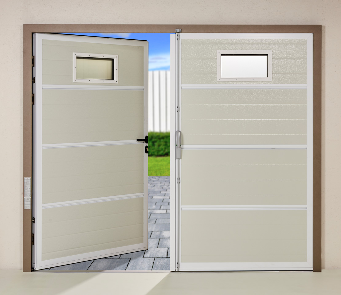 Porte De Garage Battante Duoport Panneau Nervures Larges