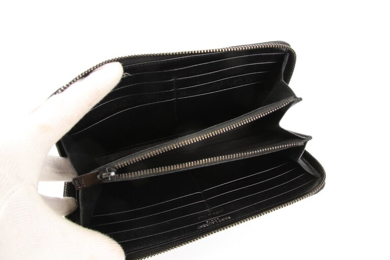 Yves Saint Laurent Zip Around Wallet In Grain De Poudre Embossed