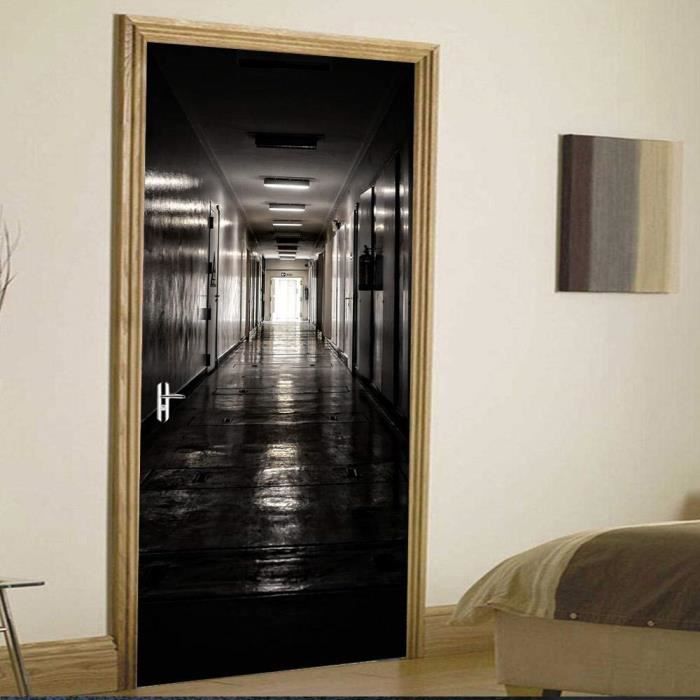 Autocollant De Porte 3d Papier Peint Fin Du Couloir Noir Pour