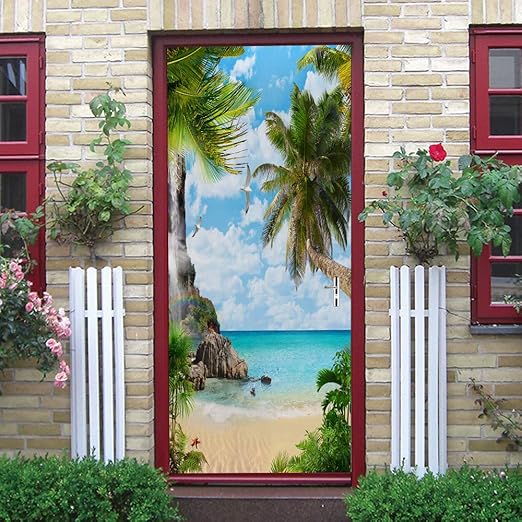 Dsaomo Stickers Porte Poster Vue Sur La Mer Papier Peint Porte