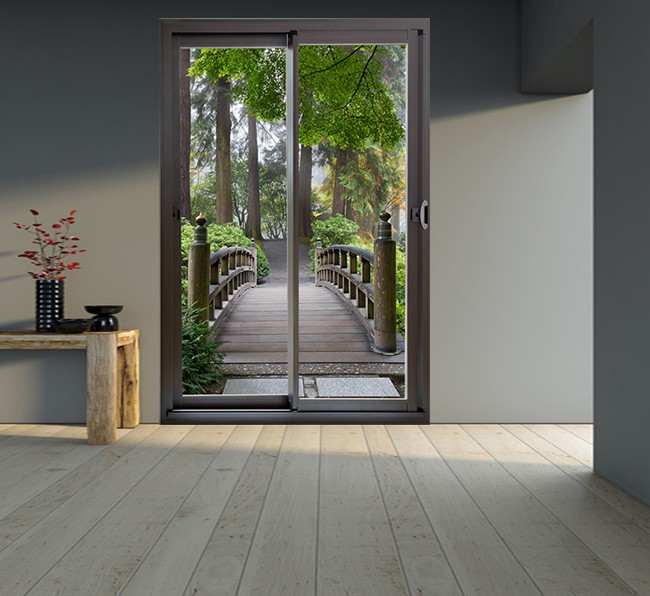 Sticker Trompe L Oeil Verriere Jardin Japonais Vert Marron