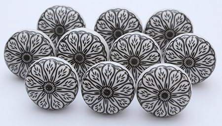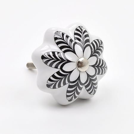 Ceramique Gras Noir Et Blanc Floral Fleur Boutons De Portes