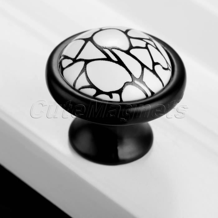 Bouton De Meuble Porcelaine Pour Ceramique Porte Noir Blanc Entre