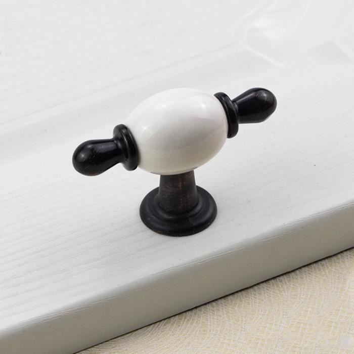 Ceramique Bouton De Porte Porcelaine Blanc Poignee Noir Pour