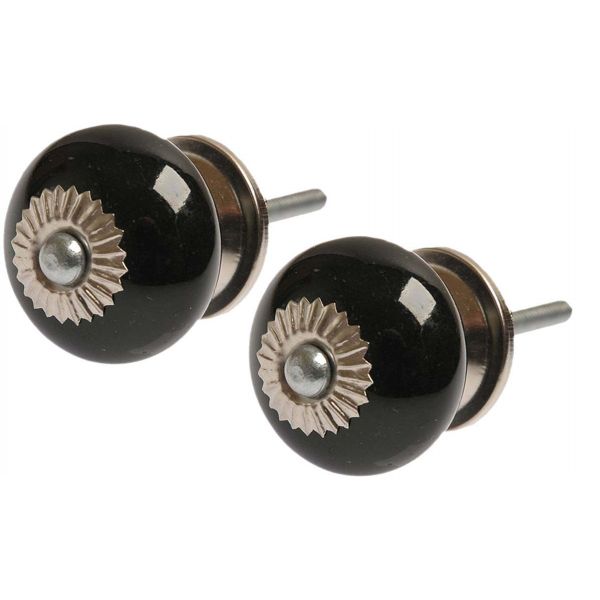 Boutons De Porte Classiques Ronds En Ceramique Lot De 2 Noir