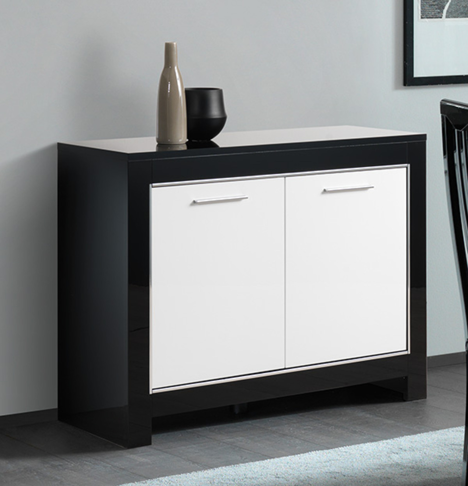 Bahut 2 Portes Modena Laquee Noire Blanc Noir Blanc