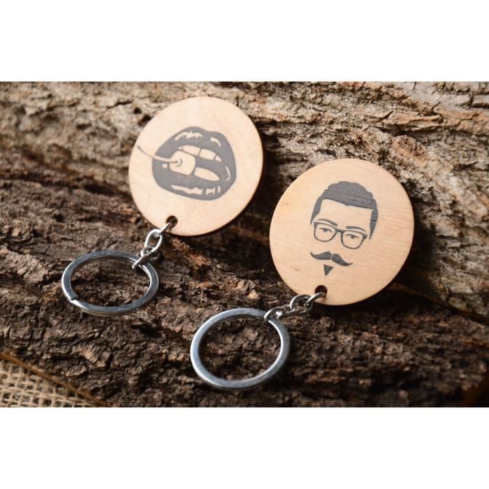 Porte Cle En Bois Porte Clef Fait Main Ronds 2 Pieces Cadeau