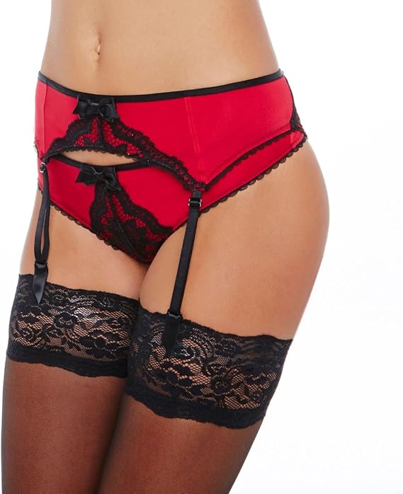 Porte Jarretelles Rouge Noir Femme Sexy Lingerie Dentelle Paripari