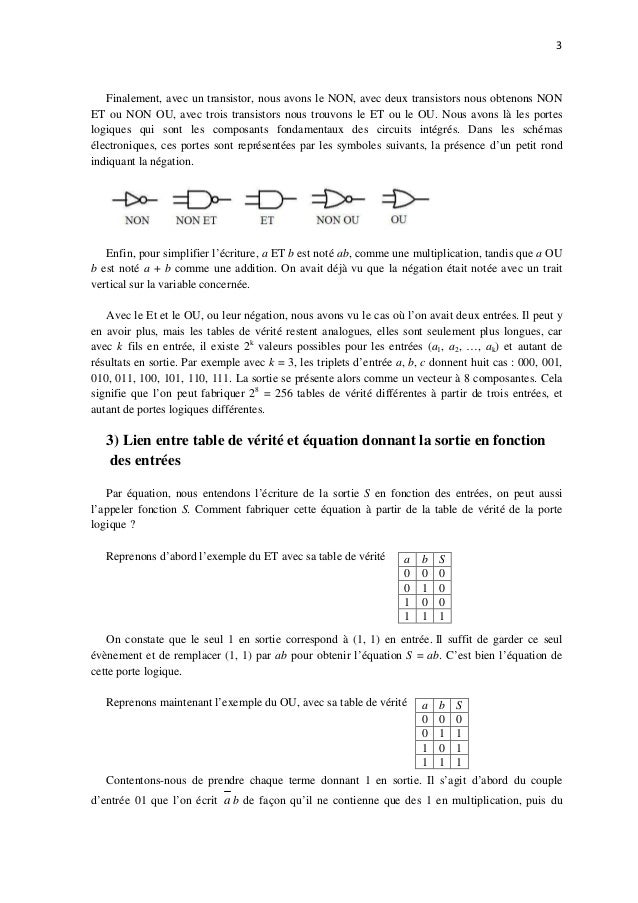 3 1 Portes Logiques Et Algebre De Boole Ppt Video Online Telecharger
