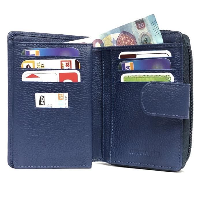 Porte Monnaie Femme Cuir Veritable Fermeture Autour Portefeuille