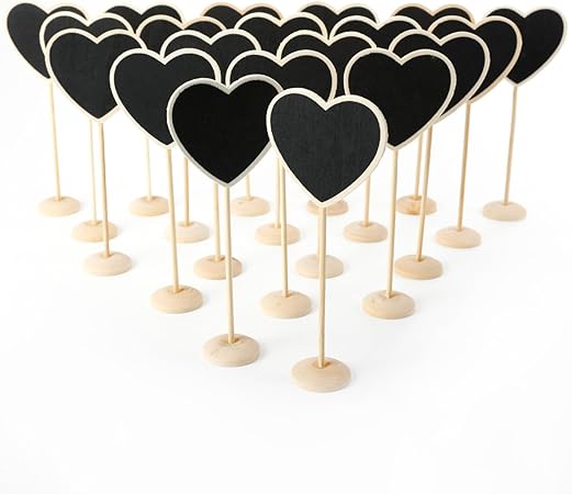 20 Mini Tableaux Noir Ardoise Coeur 6x8cm Avec Support Numero De