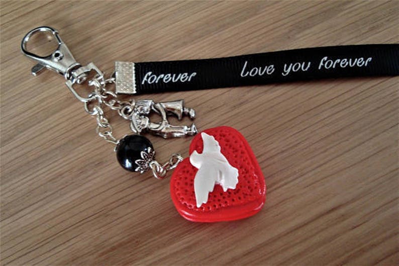 Coeur Saint Valentin Fimo Porte Cle Coeur Et Colombe Pate Etsy