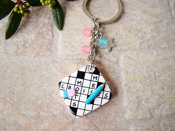 Porte Cles Femme Mots Croises Cadeau Cruciverbiste Pate Fimo