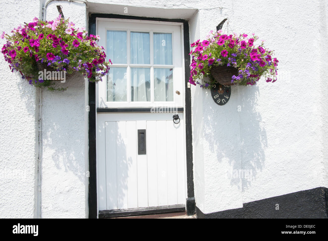 Porte Blanche Avec Cadre Noir Et Blanc Mur Et Paniers De Fleurs